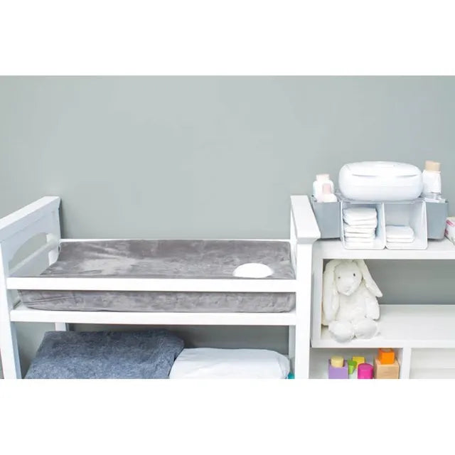- Cushiony changing pad for comfort, countoured sides for safety, and cover is machine washable and dryable