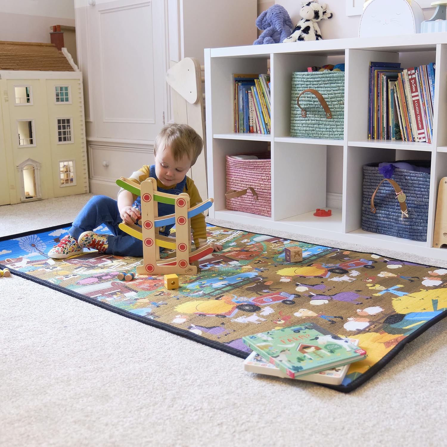 The Prince Lionheart Playmats have been designed to cushion and delight babies during tummy time, entertain toddlers for play time, and encourage young learners of all ages to engage and explore. Search for the hidden characters, count the creatures, sound out letters, or master the road rules: the only limit is their imagination. This playmat features a dual-sided creation.