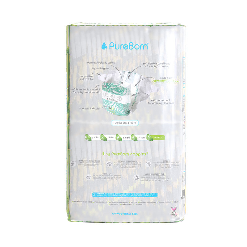 PureBorn Organic Bamboo Ultra Soft (11 - 18 kg) Nappies Size 5 Leopard Print - 44 Pcs