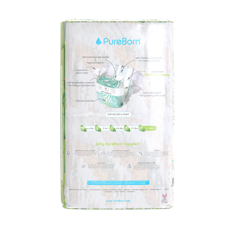 PureBorn Organic Bamboo Ultra Soft (11 - 18 kg) Nappies Size 5 Pineapple Print - 44 Pcs
