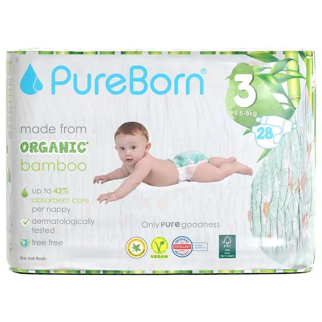 Nothing is more delicate than your baby's bottom and protecting it requires products that are gentle and free of harsh chemicals. Experiencing nappy rash can be painful for babies, therefore it is wise to take preventative measures to ensure no harsh irritants are rubbing against your baby's precious skin. PureBorn nappies are the perfect solution for painful nappy rashes. We have replaced much of the plastic materials you find in standard nappies, with sustainable materials that are not only kinder to your baby's skin but also helps to protect the future resources of our world.