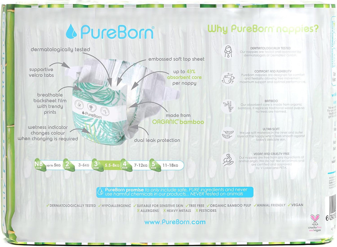 PureBorn use degradable plastics and 100 % pure Organics Bamboo Pulp which is not bleached with chlorine. A specialized Top sheet is used for the super soft feeling and instant dryness. Not a single tree has been cut to make this diaper.