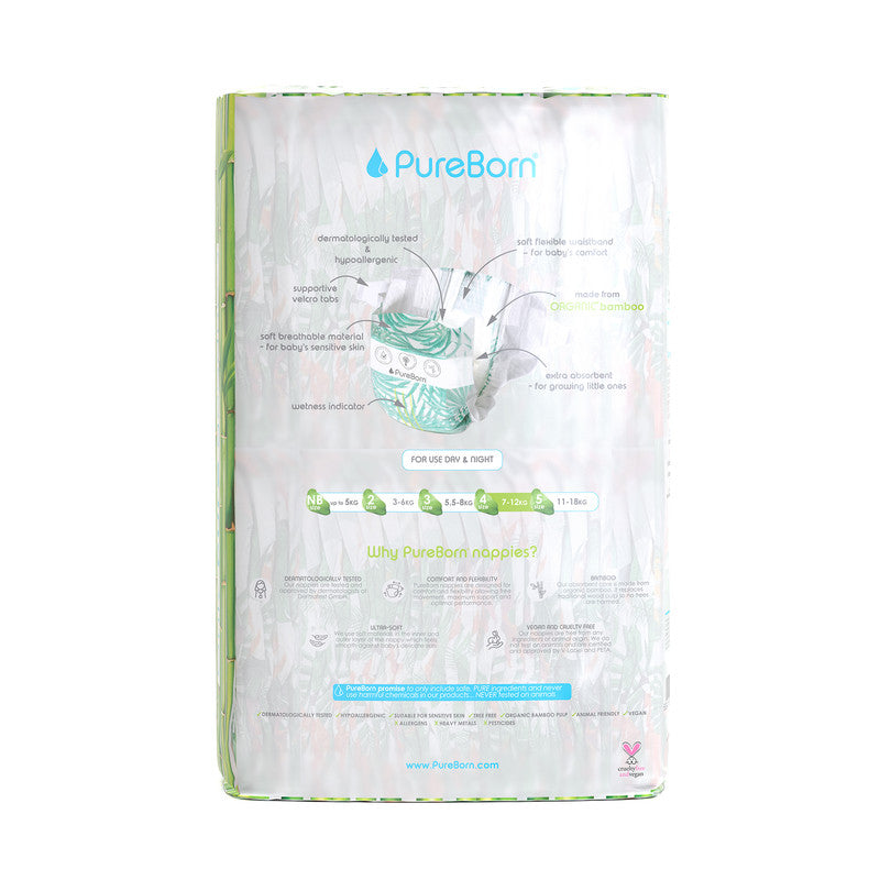 PureBorn Organic Bamboo Ultra Soft (7 - 12 kg) Nappies Size 4 Tropic Print - 48 Pcs