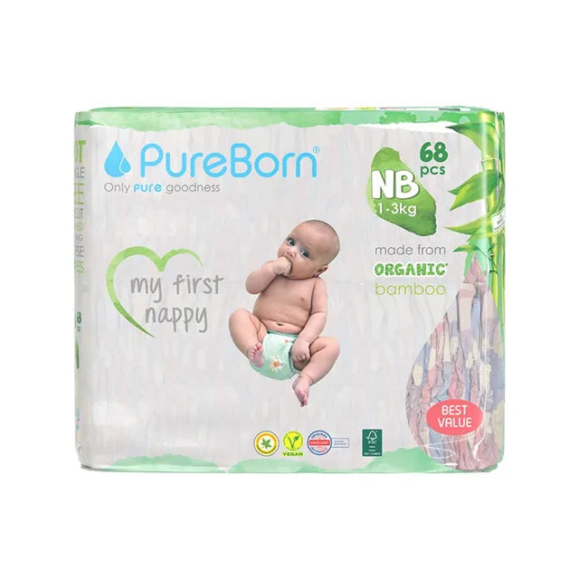 PureBorn use degradable plastics and 100 % pure Organics Bamboo Pulp which is not bleached with chlorine. A specialized Top sheet is used for the super soft feeling and instant dryness. Not a single tree has been cut to make this diaper.