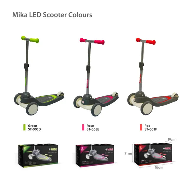 Give your little adventurer the gift of confidence and fun with the Mika LED Scooter in vibrant green! This is the ultimate grow-with-me scooter, designed for safety and style. It boasts a unique colorful LED lighting system—a technology that ensures your precious one stays highly visible in low-light for worry-free playtime. This durable yet lightweight ride is built for children aged 2 to 5 years, making it the perfect start to their outdoor adventures.