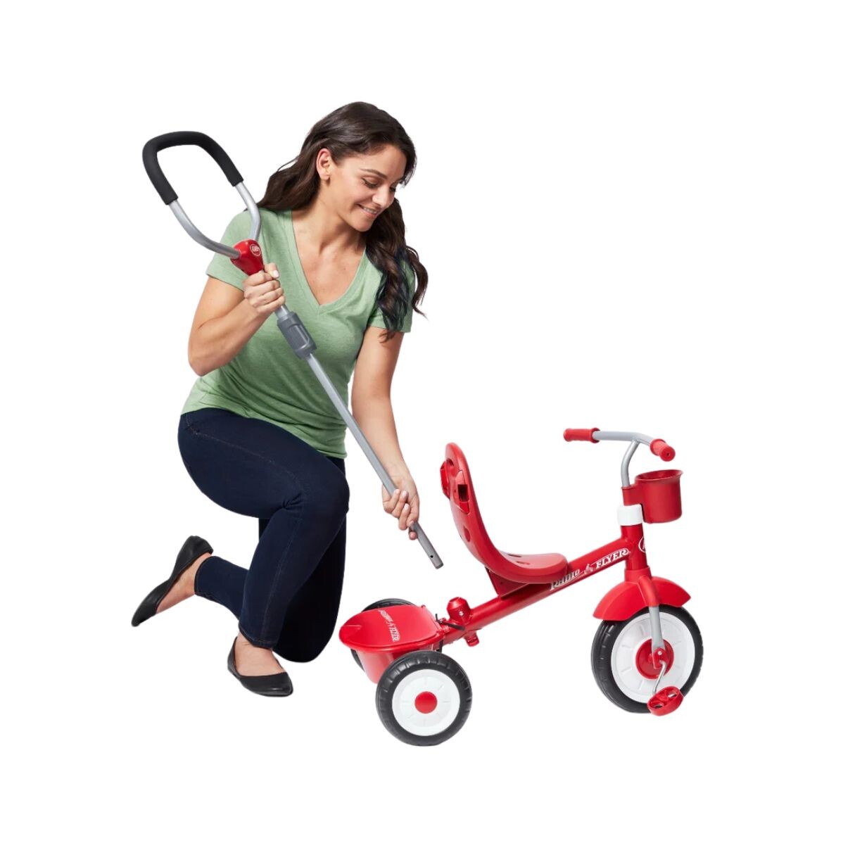 - PARENT-CONTROLLED STEERING: The height adjustable parent push handle provides easy control. The foam grip adds comfort. The push handle is removable for when the child can ride on their own..SPECIFICATIONS: Assembled product dimensions: 38 ¼ X 20 ¼ X 37 ½ inches. Maximum weight capacity 42 lbs..Skill Level: Beginner