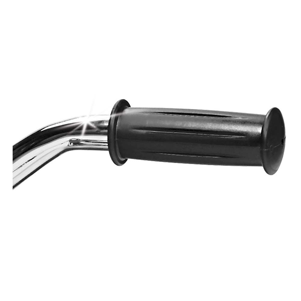 - The chrome handlebars with comfortable grip add to the sleek racing look of this chopper.