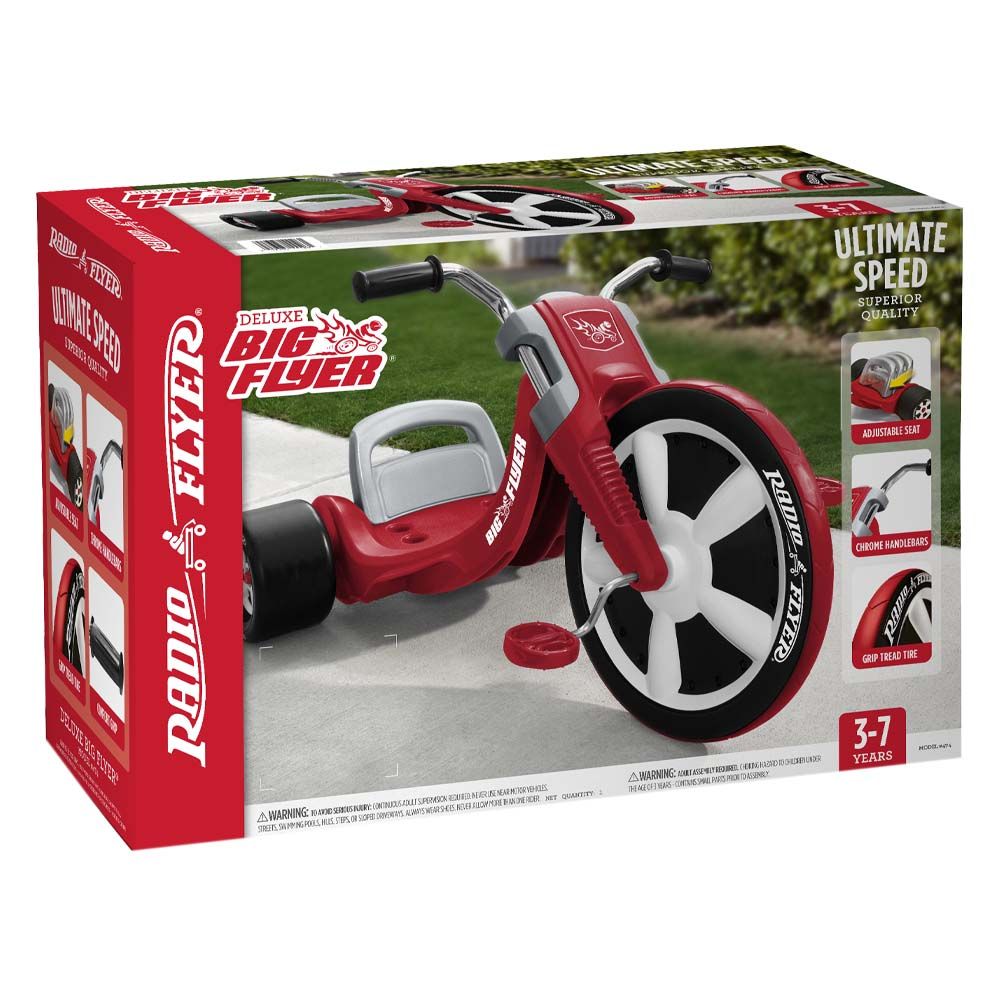 - The low-ride seat easily adjusts no tools needed! to grow with your child for years of racing fun! Watch your child develop from rookie rider to pro racer in their Deluxe Big Flyer.