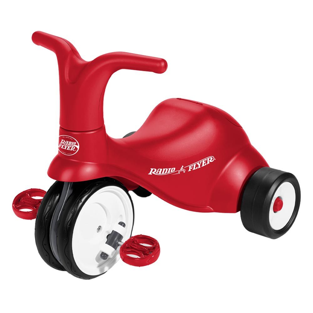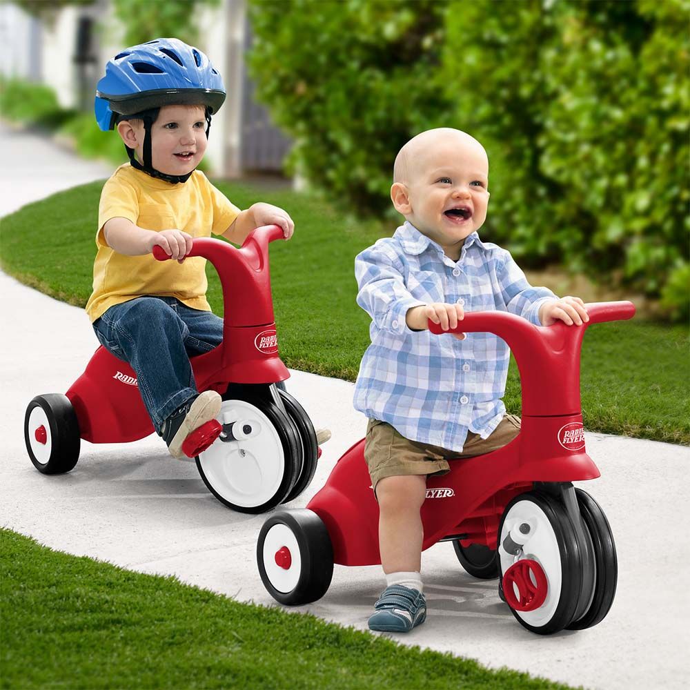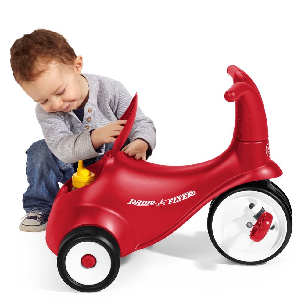 The Scoot 2 Pedal grows with your child through two milestone stages of play. First, your child can learn to scoot for fun in a comfortable contoured seat. When they are ready to learn how to pedal, simply extend the EZ flip-out pedals, and watch them go! The extra-wide wheels offer a stable ride, and the covered storage bin adds extra fun to the adventure.