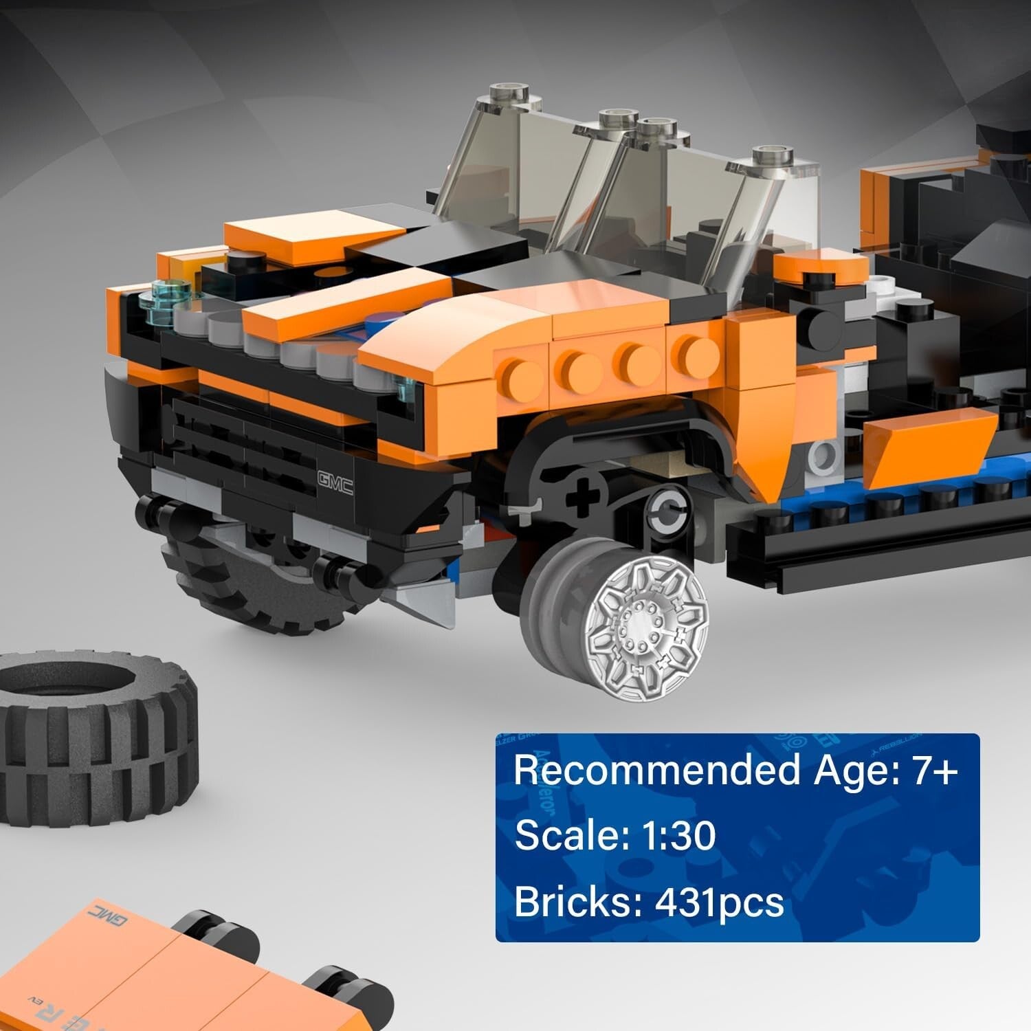 Experience the raw power and captivating design of the Hummer EV through this engaging Rastar Bricks building kit. Immerse yourself in intricate detailing as you assemble an authentic replica of the Hummer, paying homage to its every feature. Delight in the serene pastime of bringing the exquisite Hummer to life with this buildable car set. With 431 building pieces, embark on a journey of craftsmanship and elegance.