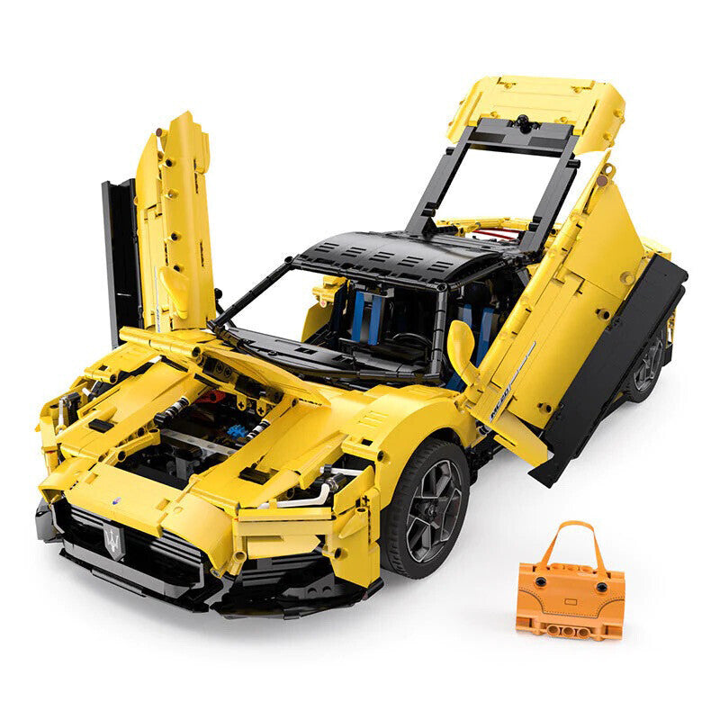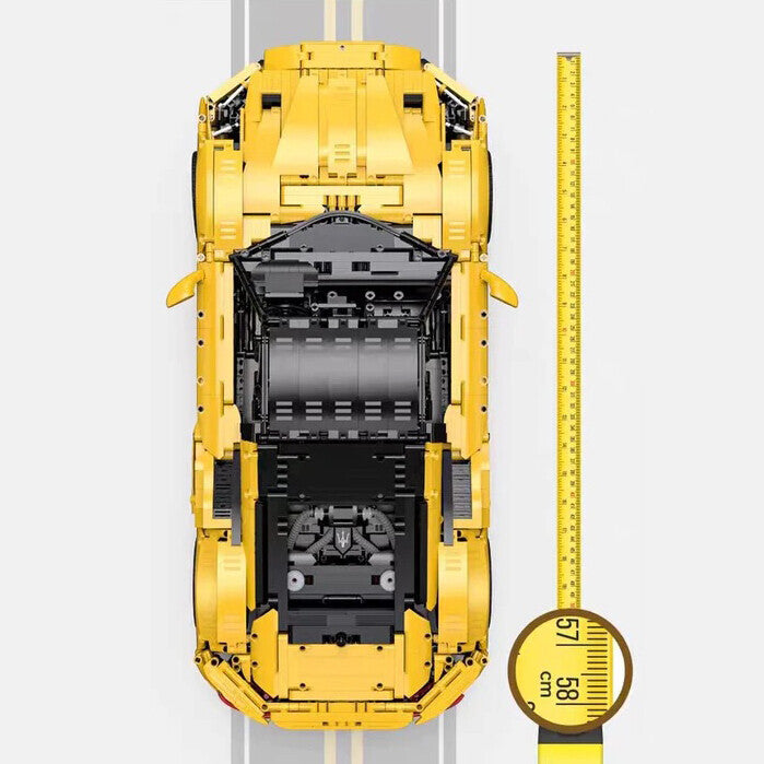 - Construct a stunning replica in eye-catching racing yellow with sleek black rims.