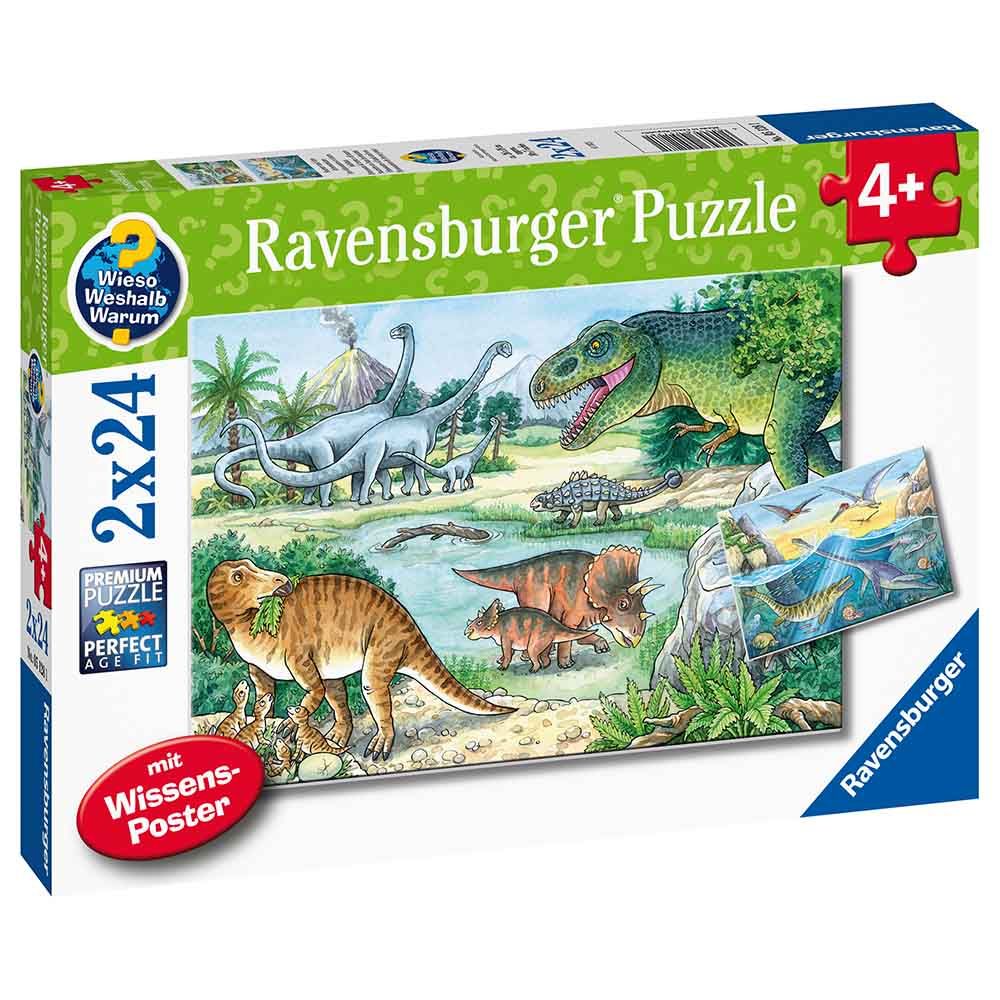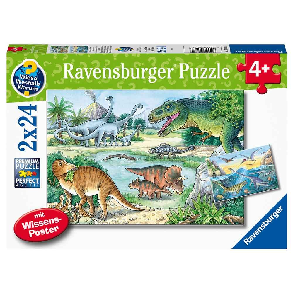 - The product includes a 2 x 24 pieces Ravensburger children's puzzle with extra knowledge poster on the theme of dinosaurs in the format 26 x 18 cm for girls and boys aged 4 and over