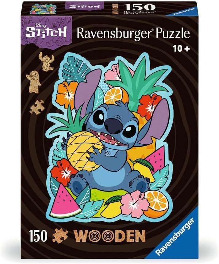- Enjoy a vibrant tropical adventure with Stitch and friends in this 150?piece shaped wooden puzzle adorned with palm trees, island motifs and hidden Whimsy pieces that delight both kids and adults