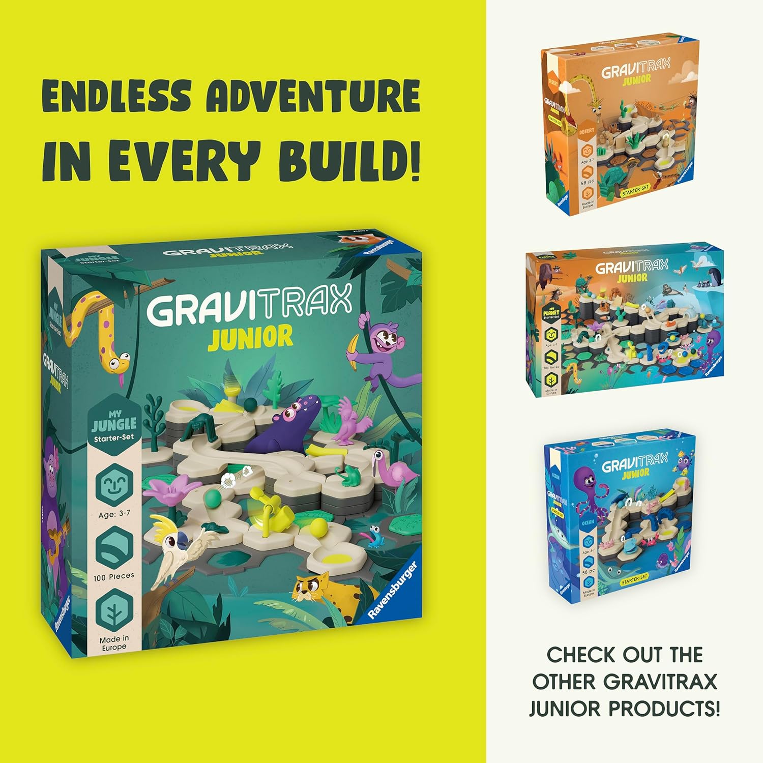 - Designed for little hands: the GraviTrax Junior Jungle set features oversized, rounded bioplastic components and simple connectors—ideal for children ages 3–7, encouraging safe, independent construction and imaginative play