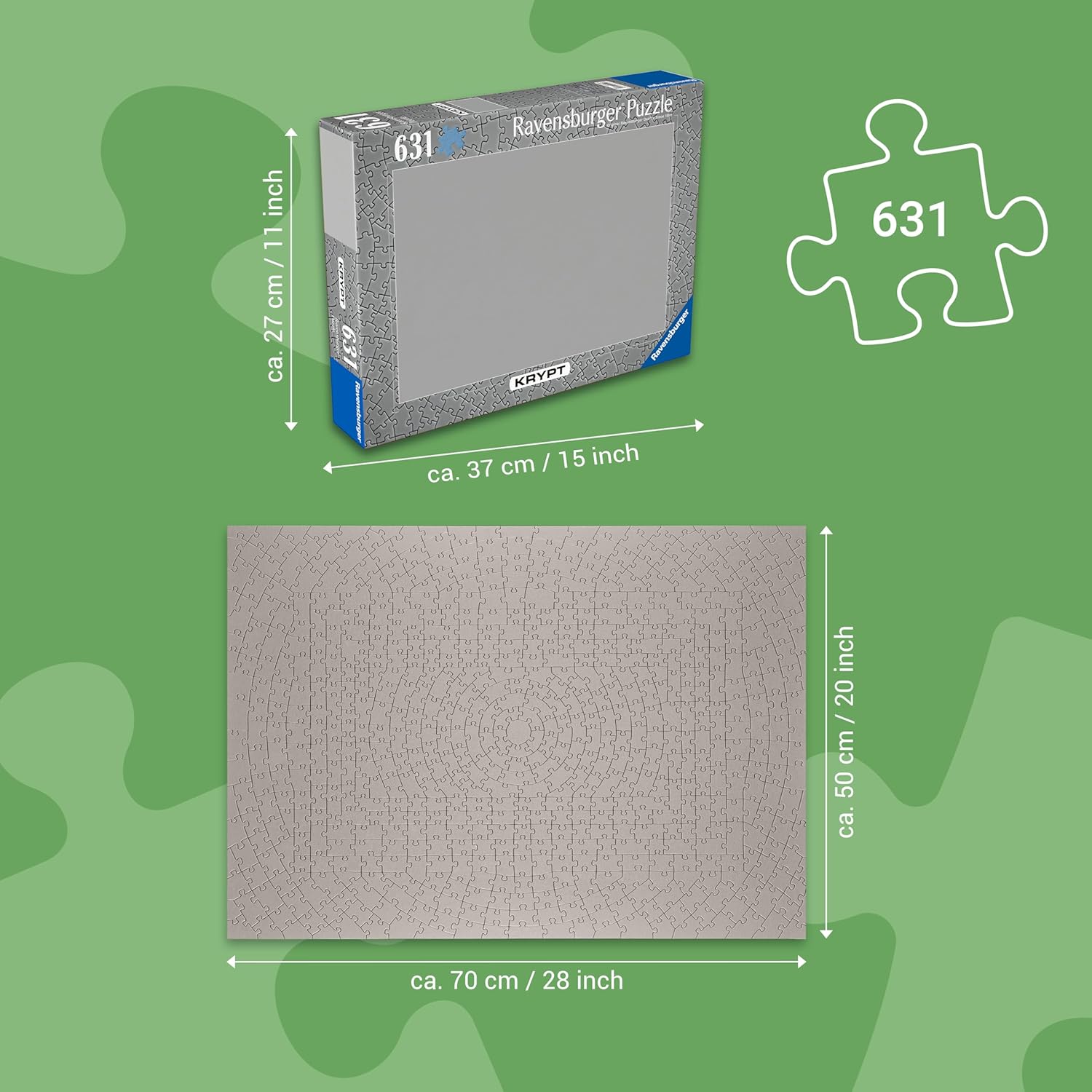 Challenge yourself with the Ravensburger Krypt-Gold Puzzle—a uniquely intense experience for advanced puzzlers. This 631-piece solid-color puzzle breaks from the traditional pattern-matching method, relying entirely on the precision of uniquely shaped pieces. Designed for puzzle pros or determined enthusiasts, Krypt-Gold delivers a gratifying sense of accomplishment. Crafted with Ravensburger’s signature quality, this puzzle is your ticket to the ultimate puzzling challenge.