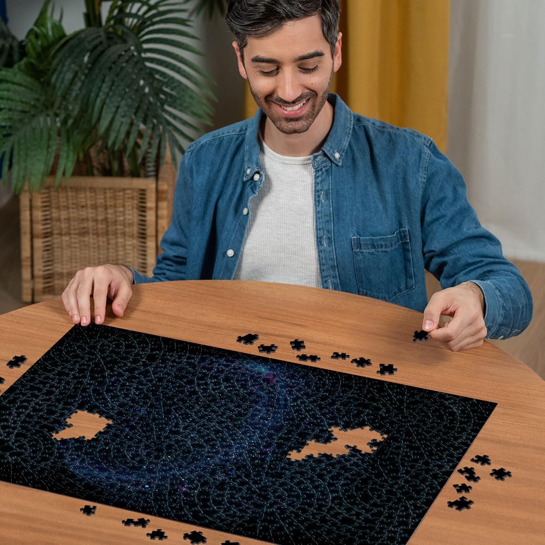 - Take on a premium puzzle challenge with 881 spiral-cut pieces in a glow-in-the-dark monochrome layout—no image to guide you, just shape-based assembly for puzzlers who love a serious test of skill