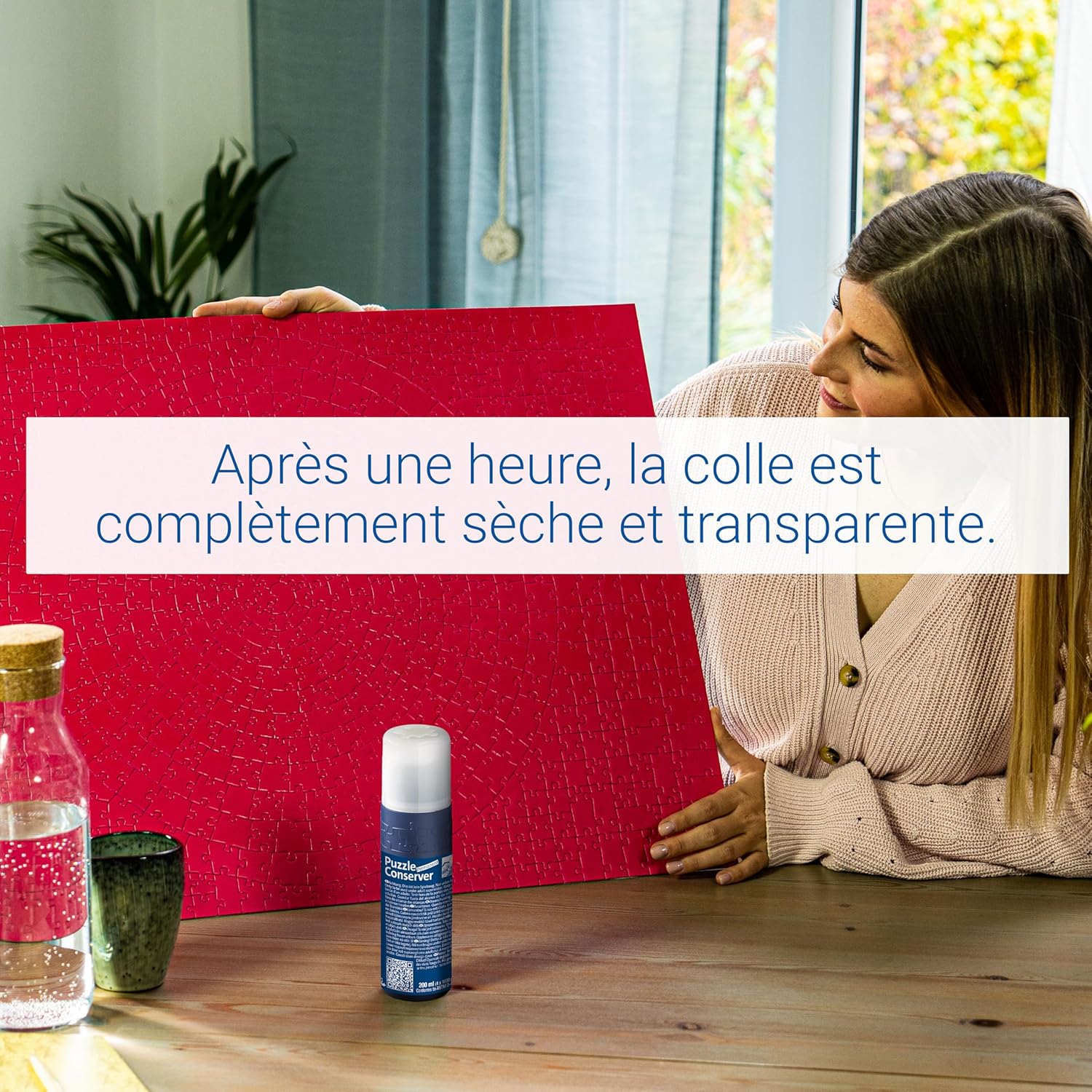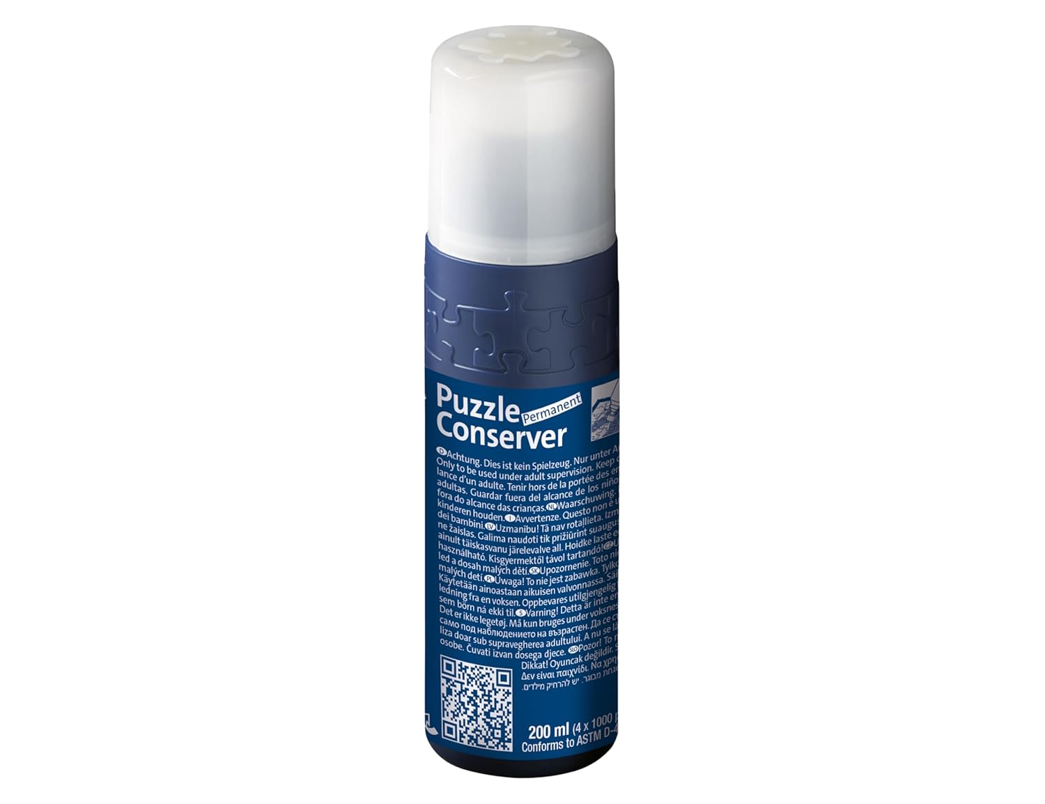 Puzzle Conserver Permanent is specifically designed for all Ravensburger puzzles, allowing you to glue and hang up your puzzle. The finished puzzle is then sealed and preserved so that the colours retain their brilliance. The liquid glue can be applied directly to the picture surface with the bottle’s sponge applicator for even distribution. After just one hour the conserver is dry and your puzzle will be ready for framing.