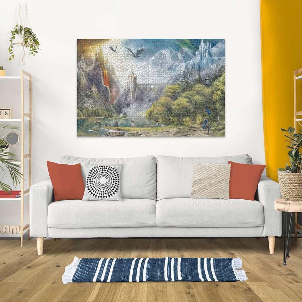 - Enchanted Fantasy Scene: Explore a mystical realm where mighty dragons soar, clash, and reign across fiery skies, and ancient castles; an immersive challenge perfect for fans of fantasy art, mythical creatures, and large-format jigsaw puzzles.
