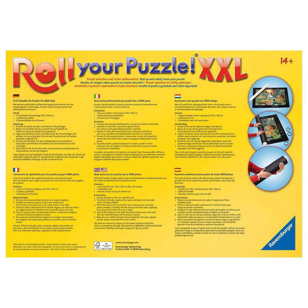 - With this puzzle mat from Ravensburger in XXL format, starting puzzles can be safely transported in small and large puzzle breaks and stowed away to save space without slipping