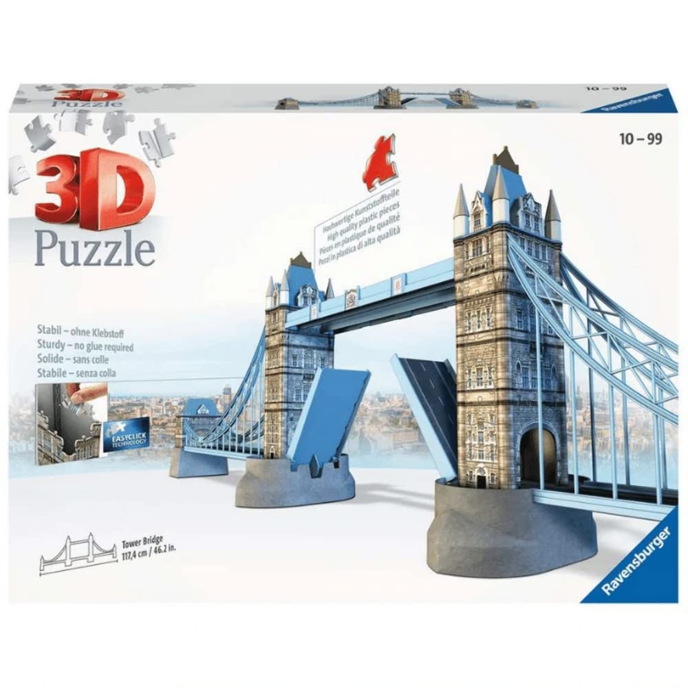 - Our Tower Bridge of London 3D building jigsaws are crafted with premium quality and when completed are 117cm wide. Great 3D puzzles for Children 8 years old and up.