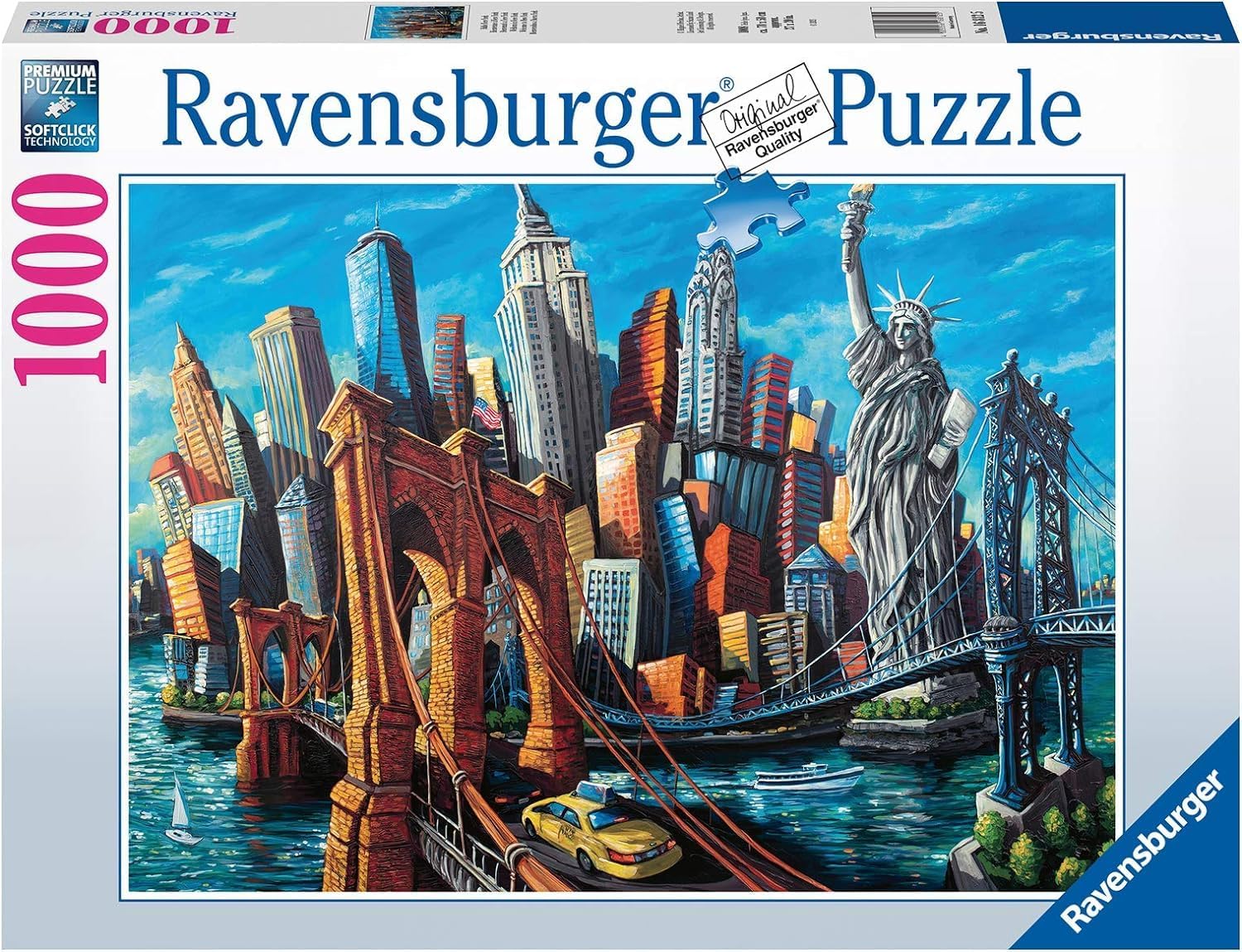 Experience the world of puzzle mastery with Ravensburger's Welcome to New York 1000-piece puzzle. With over 130 years of experience, Ravensburger is a brand synonymous with quality and innovation. This puzzle boasts our signature Softclick Technology, ensuring every piece fits together seamlessly, while the anti-glare surface enhances the visual clarity of the puzzle image. Each piece is uniquely shaped, adding to the challenge and enjoyment of the puzzle assembly process. Crafted with an extra-thick cardboard and fine, linen structured paper, we guarantee a world-class puzzle experience. Whether you're a puzzle enthusiast or looking for a fun group activity or thoughtful gift, this puzzle offers a premium, engaging and satisfying experience. Note: This product is made with materials from well-managed forests and other controlled sources, certified by The Forest Stewardship Council. Your purchase supports responsible forestry, contributing to a better future.