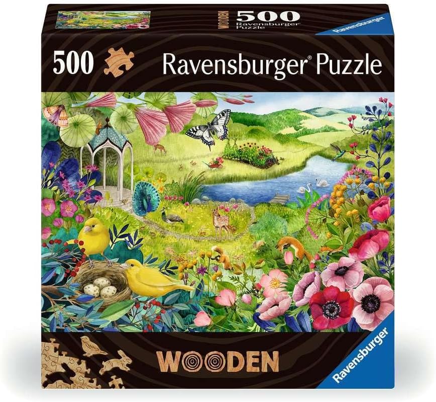 - Step into a colourful garden full of wildlife with this 500-piece wooden puzzle featuring rabbits, swans, birds, and foxes—includes 40 whimsically shaped pieces that match the nature theme with bugs and animals