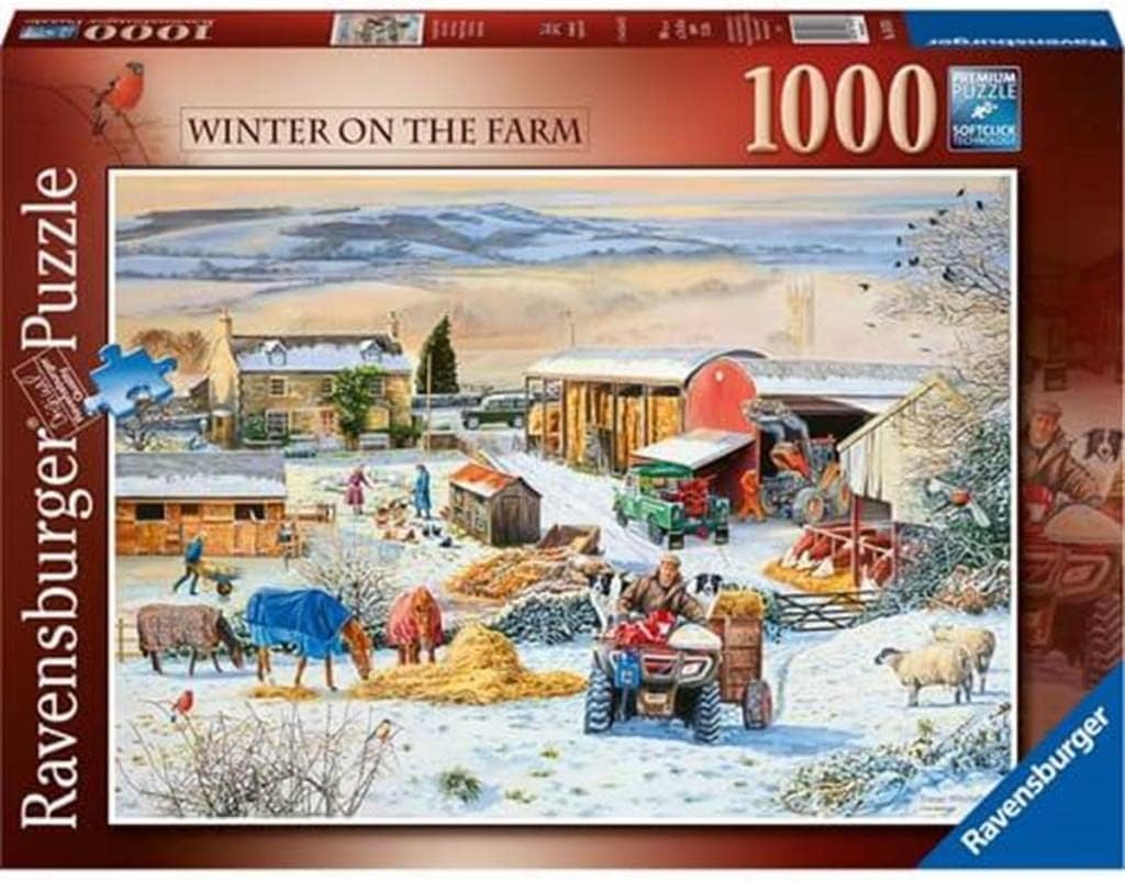 It's a chilly start to the day for this farming family, as they feed their livestock and animals. The cattle, horses and chickens tuck into their breakfast, whilst the sheep look hopeful as the farmer (helped by his faithful dogs) takes more hay bales up the hill. Our busy farm workers don't have time to enjoy the beautiful snowy landscape and atmospheric mist that drifts across the valley behind them. Hopefully it will soon be time for their breakfast, and they can escape into the warm and welcoming farmhouse for a while! Relax, unwind and enjoy some mindful moments as you piece together this charming countryside scene. Our 1000 piece jigsaws are crafted with premium quality and measure 70 x 50cm when complete. Great for Adults and ideal puzzles for Children 12 years old and up. Bestselling puzzle brand worldwide - With over 1 billion puzzles sold, our jigsaw puzzles make ideal gifts for women, great gifts for men and fit perfectly on our puzzle board. Our puzzles use an exclusive, extra-thick cardboard combined with our fine, linen structured paper to create a glare-free puzzle image and give you the best experience possible. Positively Puzzling - From fun family times together to long term health benefits and day-to-day mindful moments, there are so many positives about the humble Jigsaw! They make a great birthday gift or smashing Christmas gift