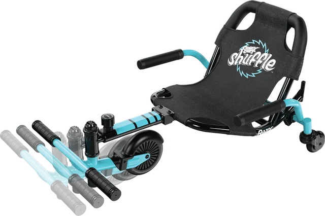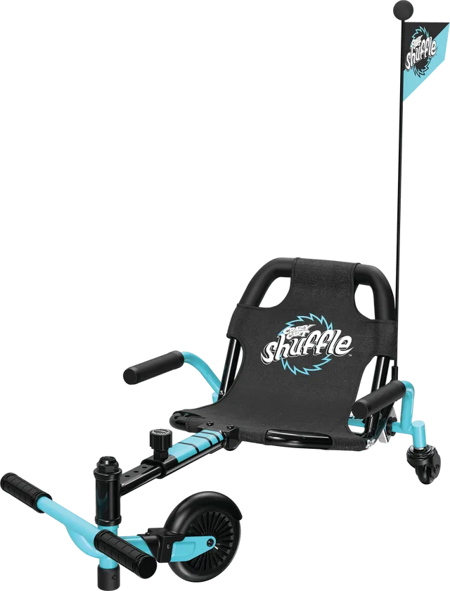 Kid-Powered Drifting Go Kart ƒ?? Drive, Drift, And Spin Without Any Batteries To Charge Or Maintain! Kid-Powered Means The Crazy Cart Shuffle Is Always Ready For Fun When You Are.,Intuitive Drive and Drift Systems ƒ?? Easy and fun to enjoy from the very first ride! The Shuffles Crazy Cart Drift Bar design puts full control of drifts and spins in the riders hands.,High Performance Polyurethane Wheels ƒ?? Help riders gain and maintain speed with ease. Rear caster wheels enable the Shuffle to spin and drift freely.,Razor offers a full line of award-winning products that inspire and excite riders around the globe. Influenced by our Southern California home, and rooted in popular action sports ƒ?? from motocross and BMX, to snowboarding, skateboarding and surfing ƒ??,Grows With You ƒ?? 5 length settings to choose from mean you can tailor your frame size to your preferred setting and share the fun of your Crazy Cart Shuffle with siblings and friends (ages 4+) of various heights.