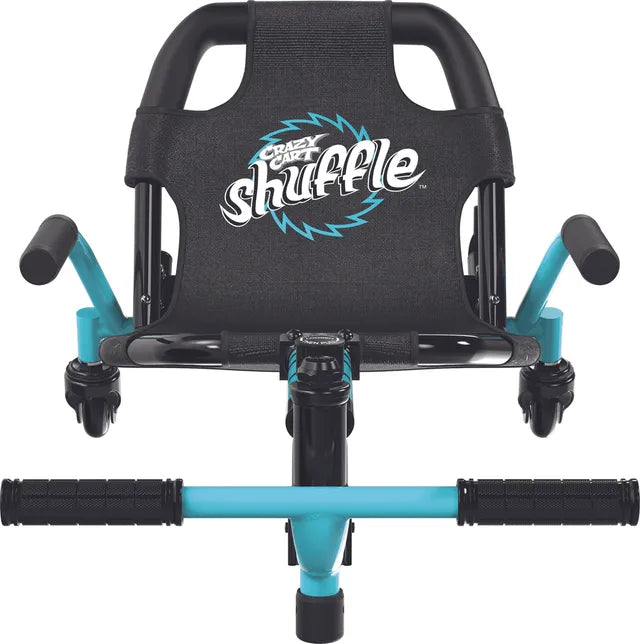 The Crazy Cart Shuffle is an incredibly fun, kid-powered go-kart that enables riders to drive, drift, and spin with ease! Riders simply shuffle their feet back and forth to gain speed, and then lift the Drift Bar to initiate the incredibly fun feeling of drifting and spinning freely. The Shuffles Crazy Cart Drift Bar design puts full control of drifts and spins in the riders hands. The Shuffles intuitive drive and drift systems have been designed to make it easy and fun for everyone to enjoy, whether novice or expert. The Crazy Cart Shuffle also features an adjustable length frame with 5 settings which means you can tailor your frame size to best fit you and still be able to easily share the fun of your Crazy Cart Shuffle with siblings and friends (ages 4+) of various heights. Without any batteries to charge or maintain, the Crazy Cart Shuffle is always ready for fun when you are!