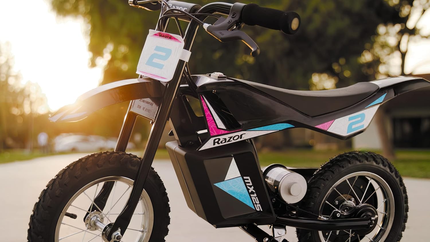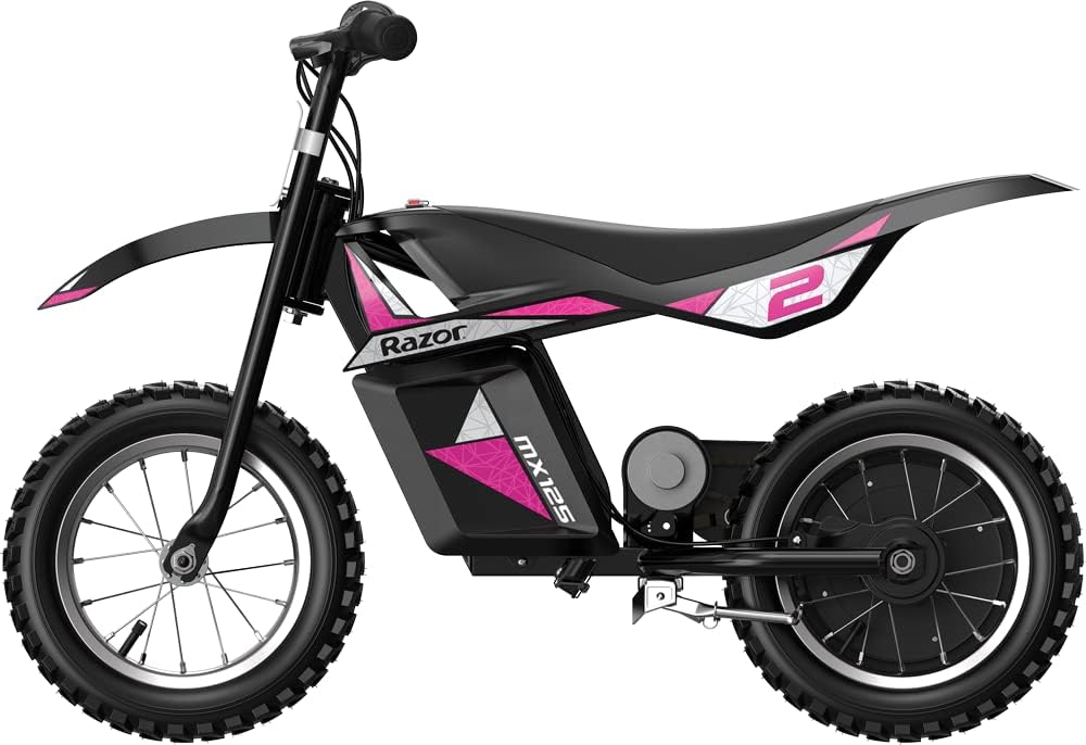The Mx125 Is Razors Smallest Electric Dirt Bike, Scaled Down To Size For Riders Ages 7 And Up.,Designed with motocross dirt bike geometry, knobby tires and twist-grip throttle.,Rear-wheel drive delivers better balance control and traction for a safer, more stable ride.,,Carries riders at speeds of up to 8 mph (13 km/h) with up to 40 minutes of continuous use.