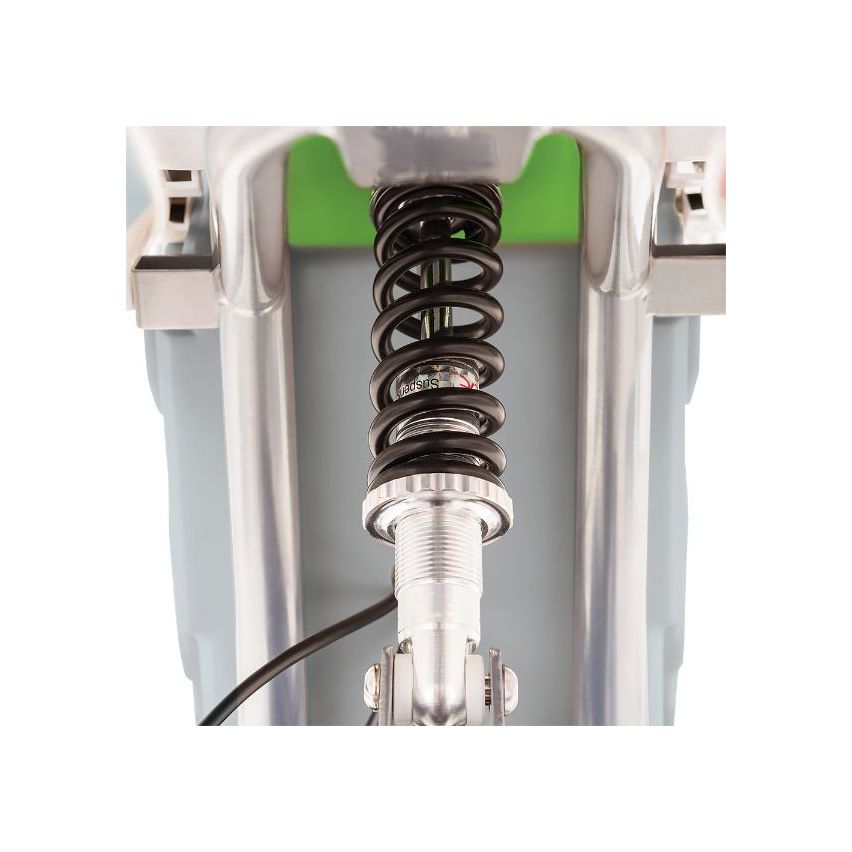 - Large pneumatic knobby tires for maximum power transfer; retractable kickstand