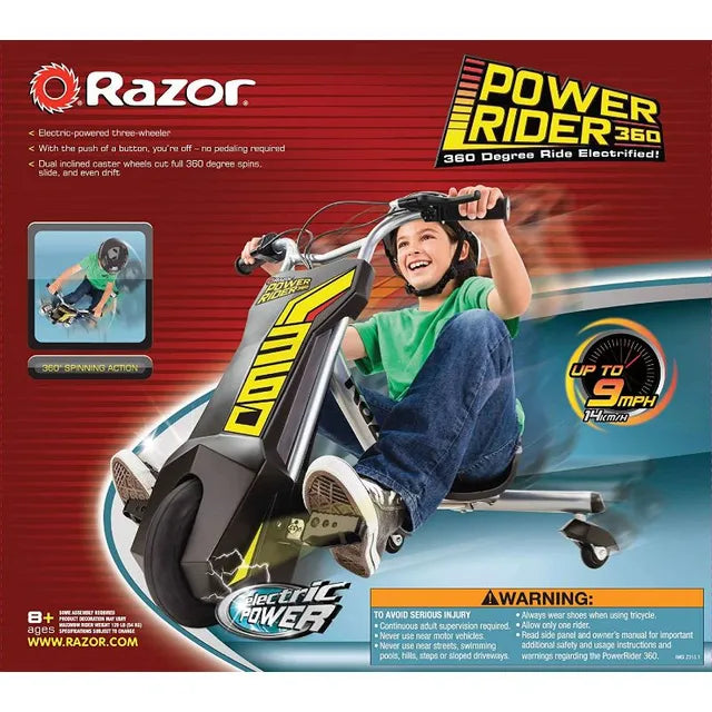 - Blast into the future with the PowerRider 360 - all-new, electric powered 3-wheeler from Razor