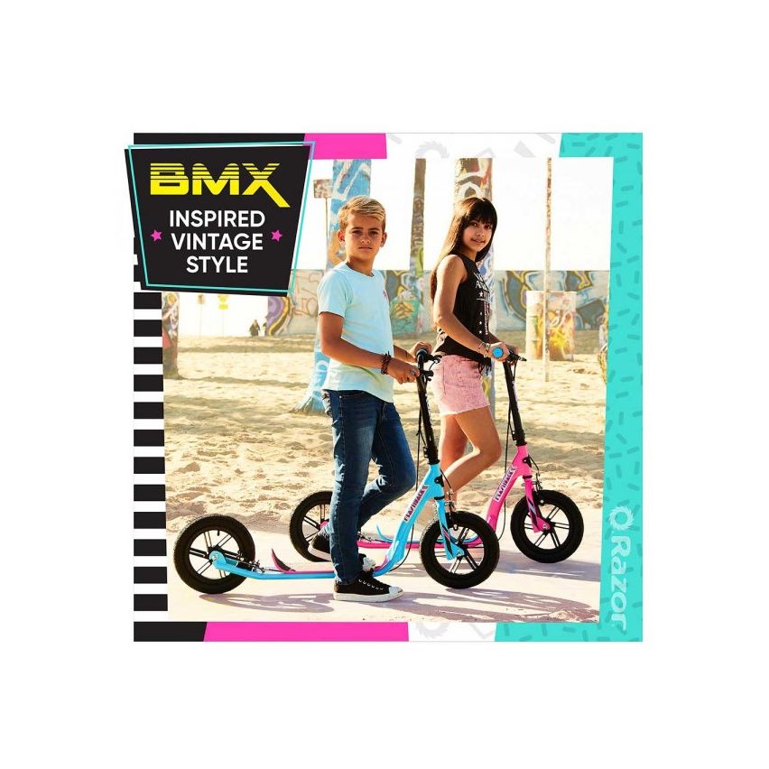 - True To The Bmx Vintage Scooter. A Stylish, Authentic Design With Retro-Inspired Touches From Bright, Bold Colors To The Bmx-Inspired Riser Handlebar. Designed For Riders Ages 8 And Up,This Scooter Is Perfect For Kids, Teens,And All The Lovers Of Bmx,A - - Smooth Ride – This large-wheel scooter guarantees the smoothest ride possible — two 12-inch (305 mm) mag wheels with air-filled tires to soak up little bumps and give you minimalrolling resistance.,