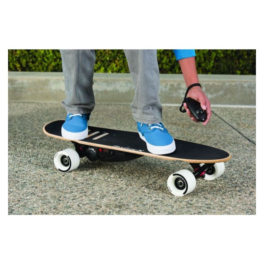 The Versatile Cruiser Features A Kick-To-Start,125-Watt Motor, Providing Lithium-Ion-Powered Electric Skateboarding Action At Speeds Up To 10 Mph (16 Km/H)For Up To 40 Minutes Of Continuous Use.,29.7”(754mm)deck length and high-quality,5-ply maple deck deliver a lightweight, responsive ride,perfect for cruising. ,Includes a wireless (2.4 GHz) remote with wrist strap (replaceable) for variable-speed control of the electrifying carve-and-turn action.,Max Rider Weight: 220 lb (100 kg),Additional features include high-grip urethane wheels with custom,reverse kingpin trucks for enhanced stability, perforated grip tape,and geared,rear-wheel-drive motor with no alignment issues, chain or belt.
