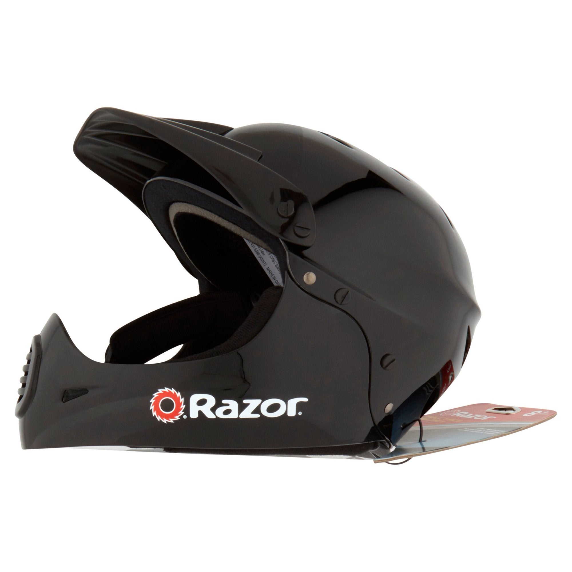 Tough yet lightweight durability is the trademark of the full face youth helmet from Razor. Designed with a spacious eye port that provides plenty of room for goggles and great visibility, the full face helmet offers ideal protection for high-intensity biking that requires full-face coverage headgear. The ergonomically designed padding and additional sizing pads provide a perfect fit and guarantee comfort. With 12 vents, the wearer's head stays cool at all times, and the side release buckles make it a breeze to adjust and fasten your chin strap.