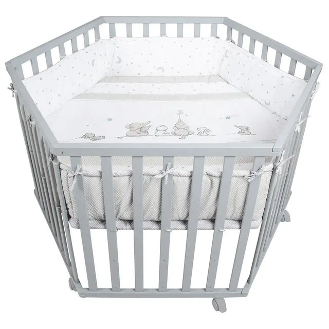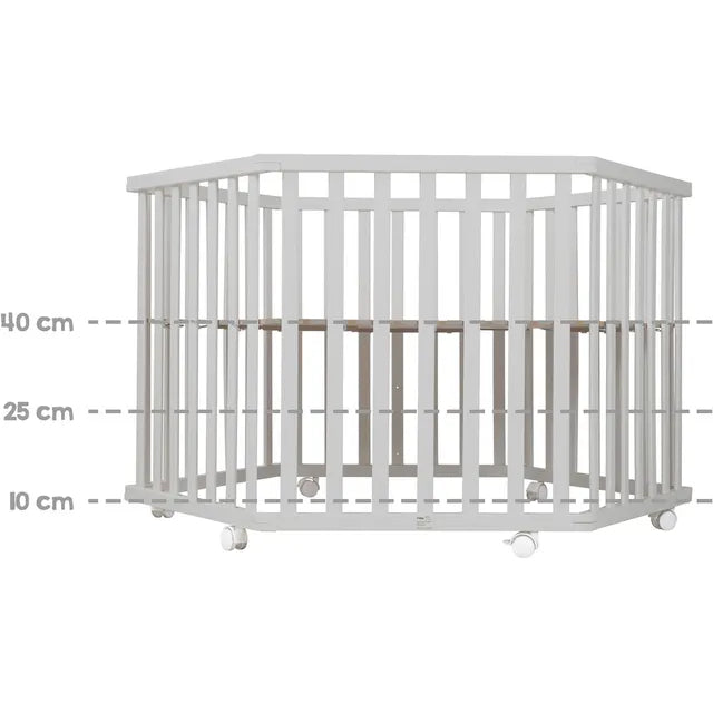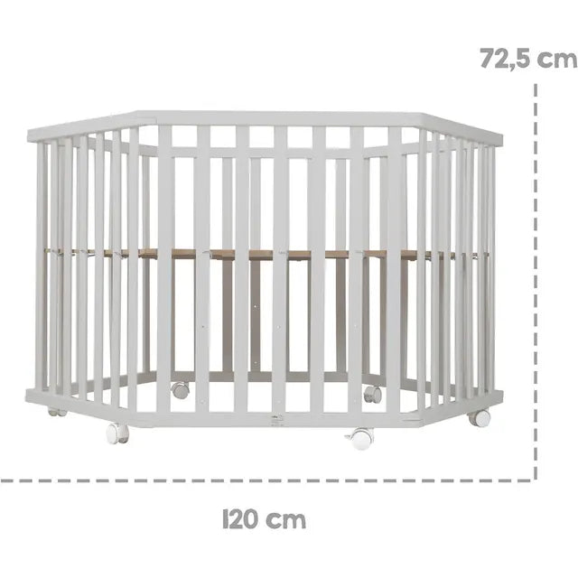 - HEXAGONAL PLAYPEN: 6-sided playpen made of wood with a cozy textile insert in a delightful “Star Magic” design from 0M+ to 15kg
