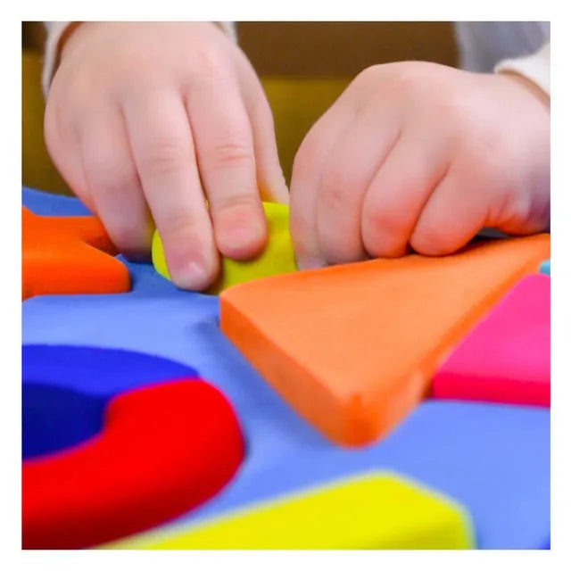Stimulate your kid's brain to recognize shapes and colours easily with the Rubbabu 3D Shape Sorter Geometrical Shapes. Each shape comes in different colour to make kid's learning more fun and colourful. Children will sure attracted by these cute shapes and love to learn again and again. The soft rubber material adds smooth, natural feel for little hands. Made of natural rubber, they are safe, tactile and durable.
