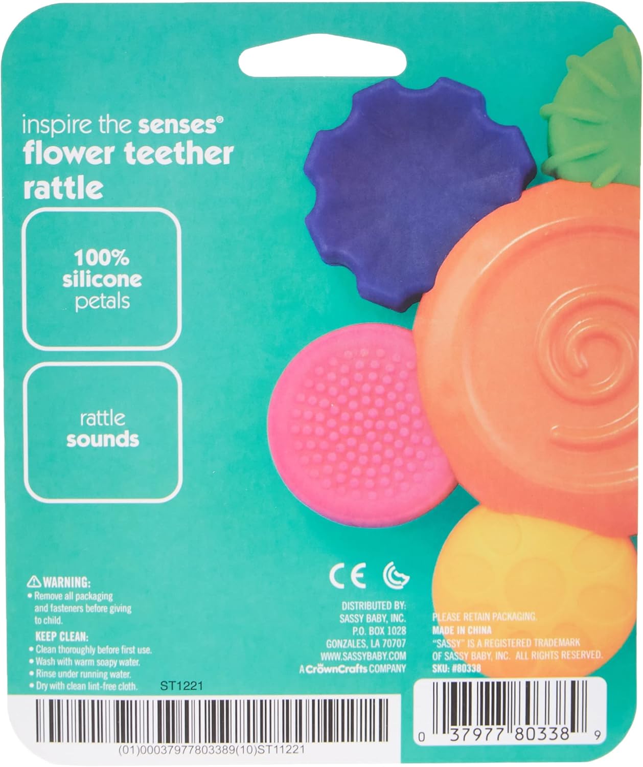 - Silicone textured petals to sooth sore gums, made of 100% food grade silicone.