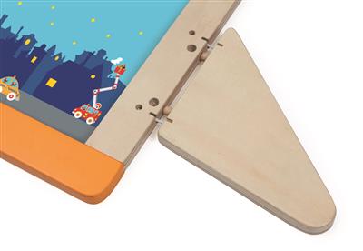 Give your creativity free reign with this double-sided drawing board! On one side you can let loose on the blackboard, while on the other you can colour with markers and stick magnets on a fun city-themed or safari-themed Scratch drawing. The magnetic board is designed so that it can easily be used on a table, and its user-friendly extension system handily allows you to set it up in three different positions. You can become a true drawing champion thanks to this compact drawing board made of sustainable wood.