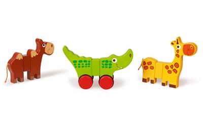 These funny magnetic animals make for endless play fun! Join the right pieces together, put the animal on its wheels and drive away! Or make funny combinations by joining random parts of different animals. This toy stimulates children’s motor skills.