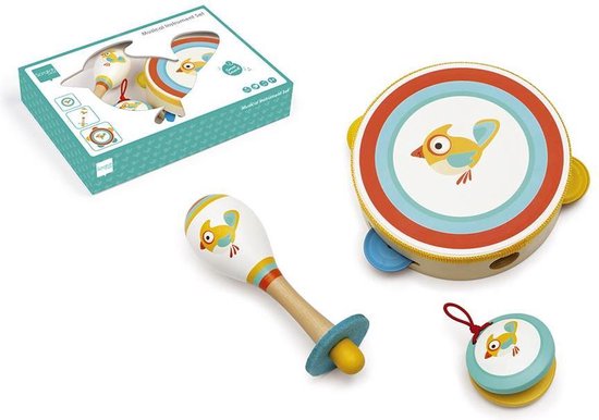 Are you ready for a mini Scratch orchestra? Young musical talents can let off steam with this 3-piece music set printed with Robin the bird. These brightly colored maracas, tambourine and castanets each have their own specific sound and stimulate children's sense of rhythm. In addition, the musical instruments are a great help in developing their social skills.