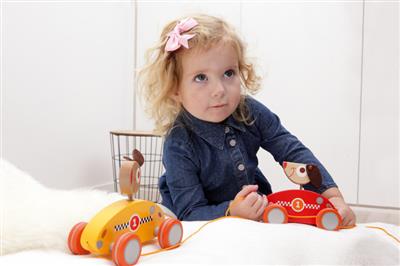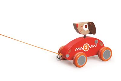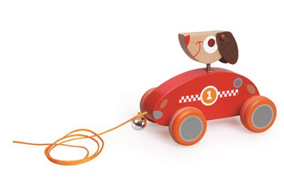 Take this funny little pull-along dog out for a walk. Just pull the string and this friendly dog follows you, his neck wobbling with joy. The toy has rubber strips on the wheels so it won't leave any marks on the floor. Will you take him home?