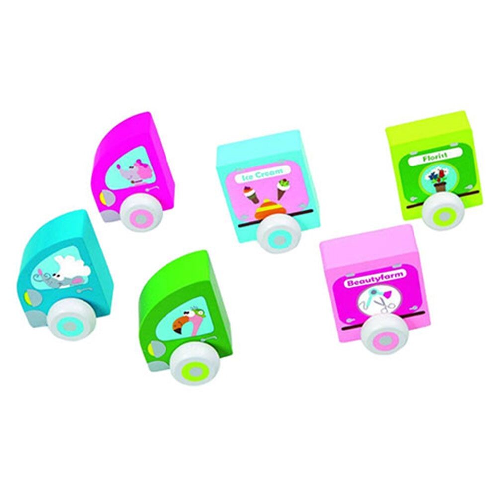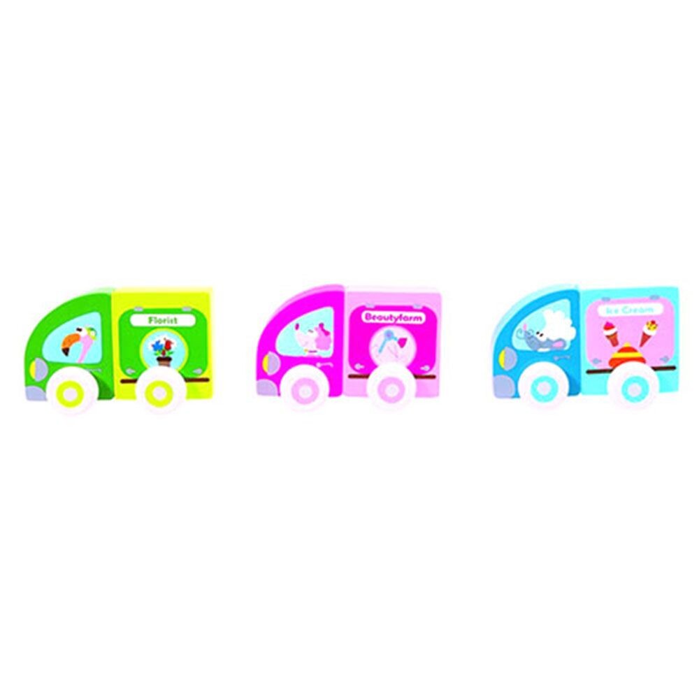 Oodles and oodles of fun guaranteed with these lovely magnetic cars! Find the right driver for every job on wheels and off you go! Make funny combinations by putting all the wagons randomly together, even a whole train is a good idea! There are three cars available to mix with: Florist, Beauty farm, Ice-cream