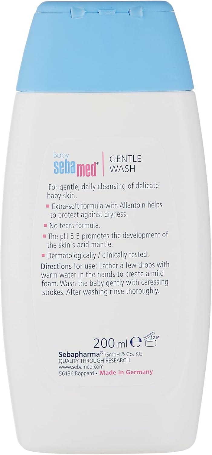 Unlike soap which can cause dryness and irritation, Sebamed Baby Wash Extra Soft's ultra mild emollient formula uniquely supports the moisture balance of your baby's delicate skin. Gentle enough to use every day, this moisturizing cleanser naturally softens and soothes with allantoin and squalane to keep even the most sensitive baby skin at its huggable, healthy best. Because a newborn's skin lacks the natural hydrolipid protective barrier which is established during the first few months of life, the Sebamed Baby Wash Extra Soft is formulated with just the right amount of PH level required to support this barrier. A higher pH level, such as found in soap, may leave your baby's skin susceptible to breakdown and irritation.