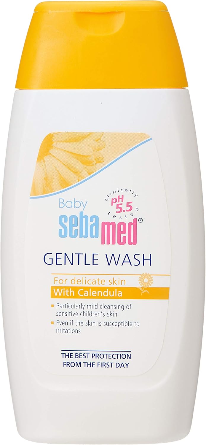 Sebamed baby wash with calendula 200ml for delicate skin with calendula, particularly mild cleansing of sensitive skin with formula from sugar surfactants, a special care complex supports the moisture balance of the skin, even if the skin is susceptible to irritations.