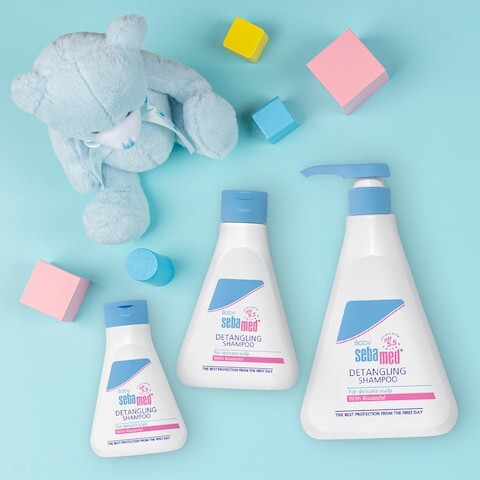 - Wet baby's hair and take 1 to 2 ml of Sebamed children's shampoo, dilute it with equal quantity of water and gently massage on scalp