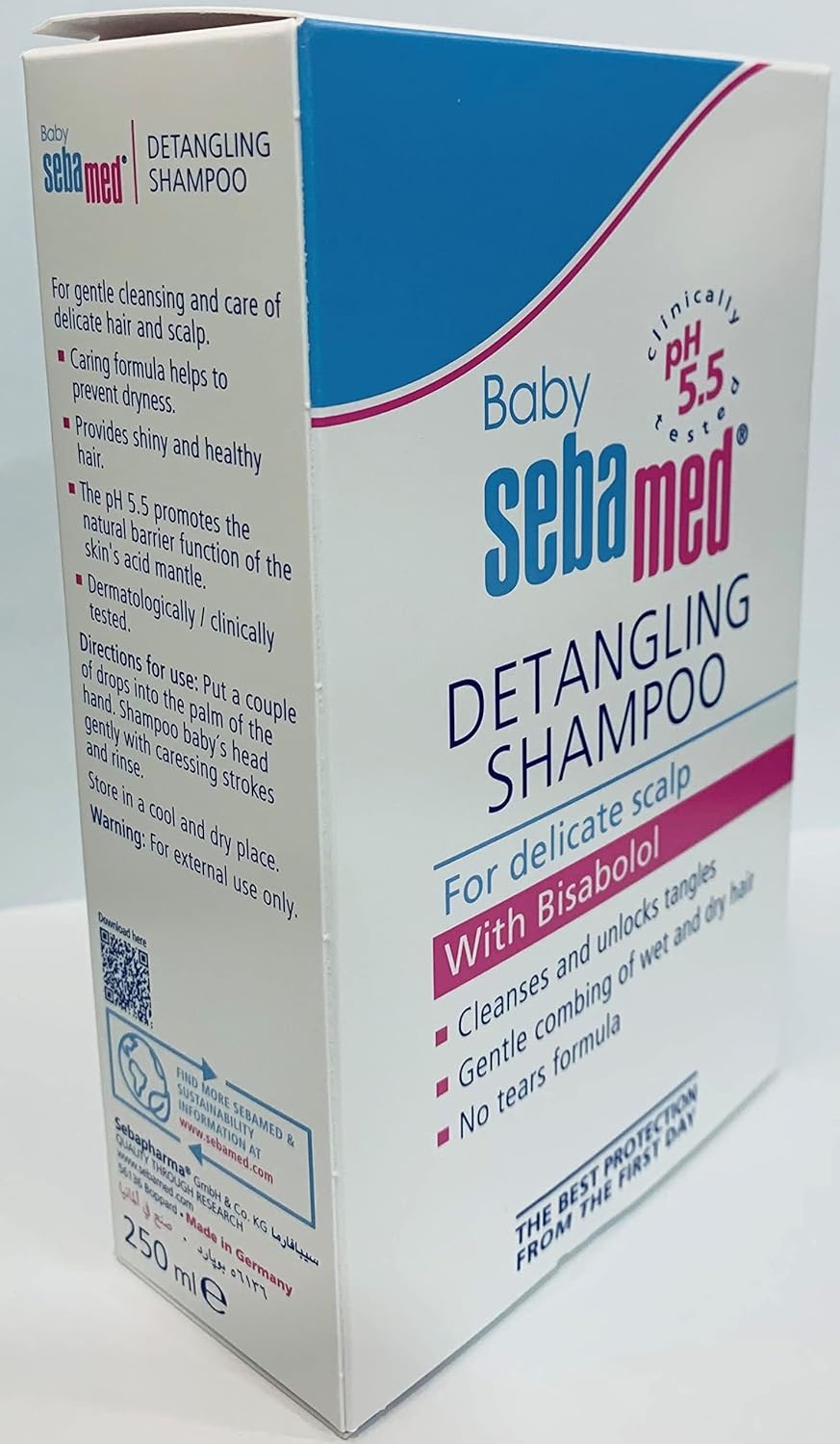 Sebamed shampoo 250ml is a mild shampoo with a pH value of 5.5, which is the natural pH of the skin. Featuring a paraben-free formula, this Sebamed shampoo is safe for your baby. It does not contain any perfume and is 100 percent soap-free to minimizes the risk of skin dryness. This mild shampoo assures you of no tears in the bathroom. You can buy this baby Sebamed shampoo bottle online at an extremely affordable price and treat your baby to a gentle caring hair wash each day.