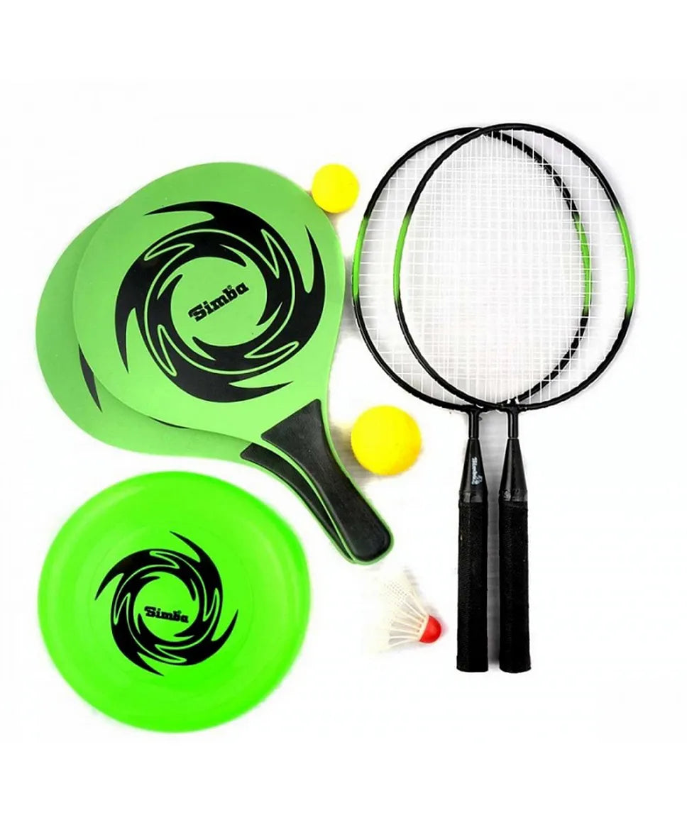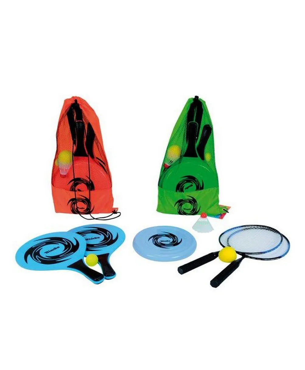 There is guaranteed to be something for everyone! In the carry bag you will find 2 beachball racquets with a ball, a throwing disc and 2 badminton racquets with a ball. Suitable for children aged 3 and over.