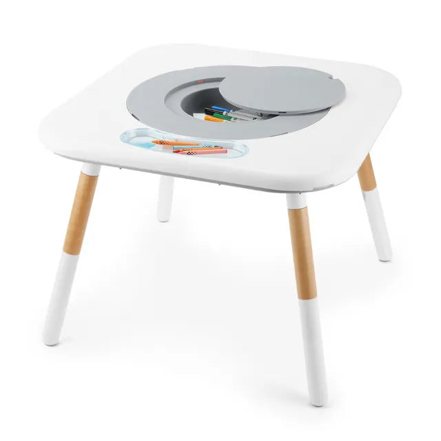 Skiphop nature-inspired activity center sparks baby's natural curiosity while encouraging self-directed exploration and sensory play. Beautifully crafted with sustainably-sourced natural wood accents, it's packed with over 25 developmental activities, five moveable toys for customized play, and the unique Discovery Window that helps teach cause & effect. The three-stage grow-with-baby design also features a 360-degree rotating seat for baby to swivel and bounce, then converts to cruising mode for new walkers and finally becomes a toddler play table with a handy bin to store crafts and supplies. Care Instruction: Machine washable polyester seat.