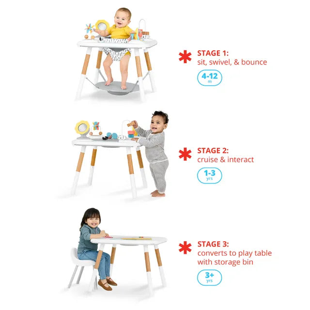 - Three Stages Of Use: Sit, Swivel, Bounce & play, Cruise & interact, Play table.